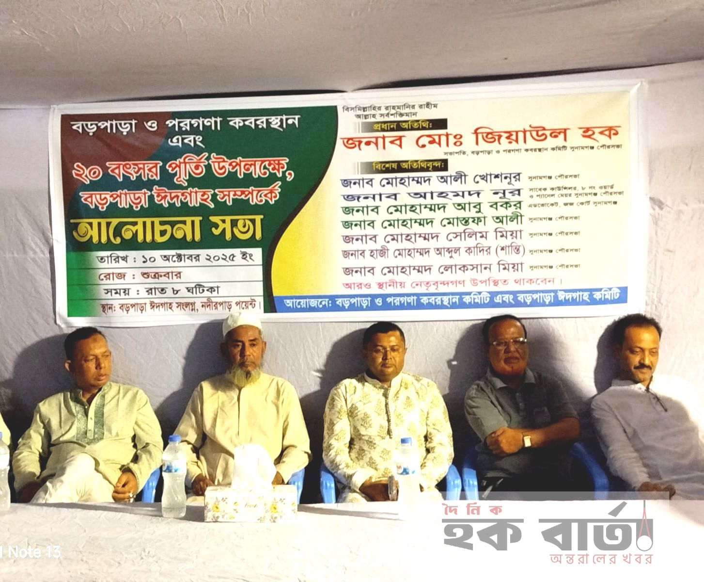 আলোচনা সভা অনুষ্ঠানে প্রধান অতিথি হিসেবে উপস্থিত ছিলেন বিশিষ্ট সমাজসেবক জিয়াউল হক, সভাপতি, বড়পাড়া ও পরগণা কবরস্থান কমিটি, সুনামগঞ্জ পৌরসভা।