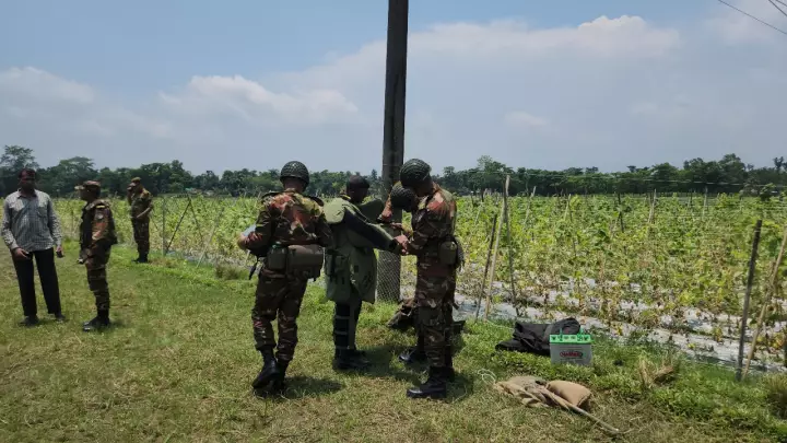 বৃহস্পতিবার দুপুরে জমির কৃষক সাব্বির আহমদ গ্রেনেডটি দেখতে পেরে পুলিশকে জানান। পুলিশ সেনাবাহিনীকে জানালে শুক্রবার দুপুরে বোম্ব ডিসপোজাল ইউনিট সেটি নিষ্ক্রিয় করে।