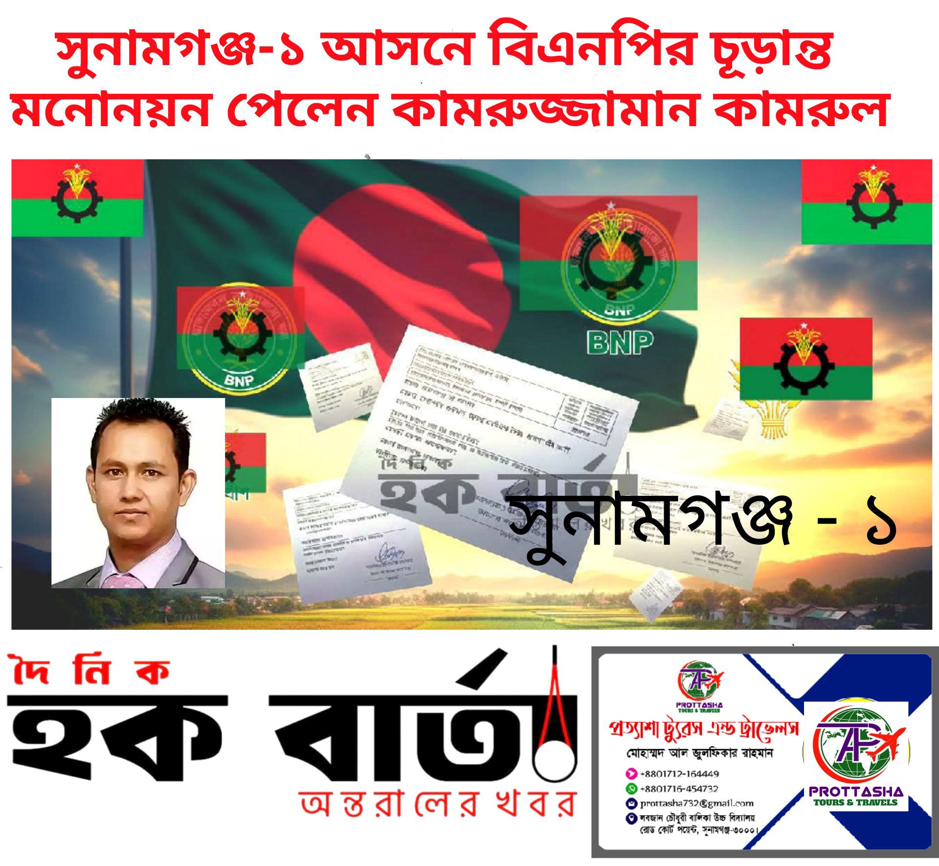 সুনামগঞ্জ-১ আসনে বিএনপির চূড়ান্ত মনোনয়ন পেলেন কামরুজ্জামান কামরুল