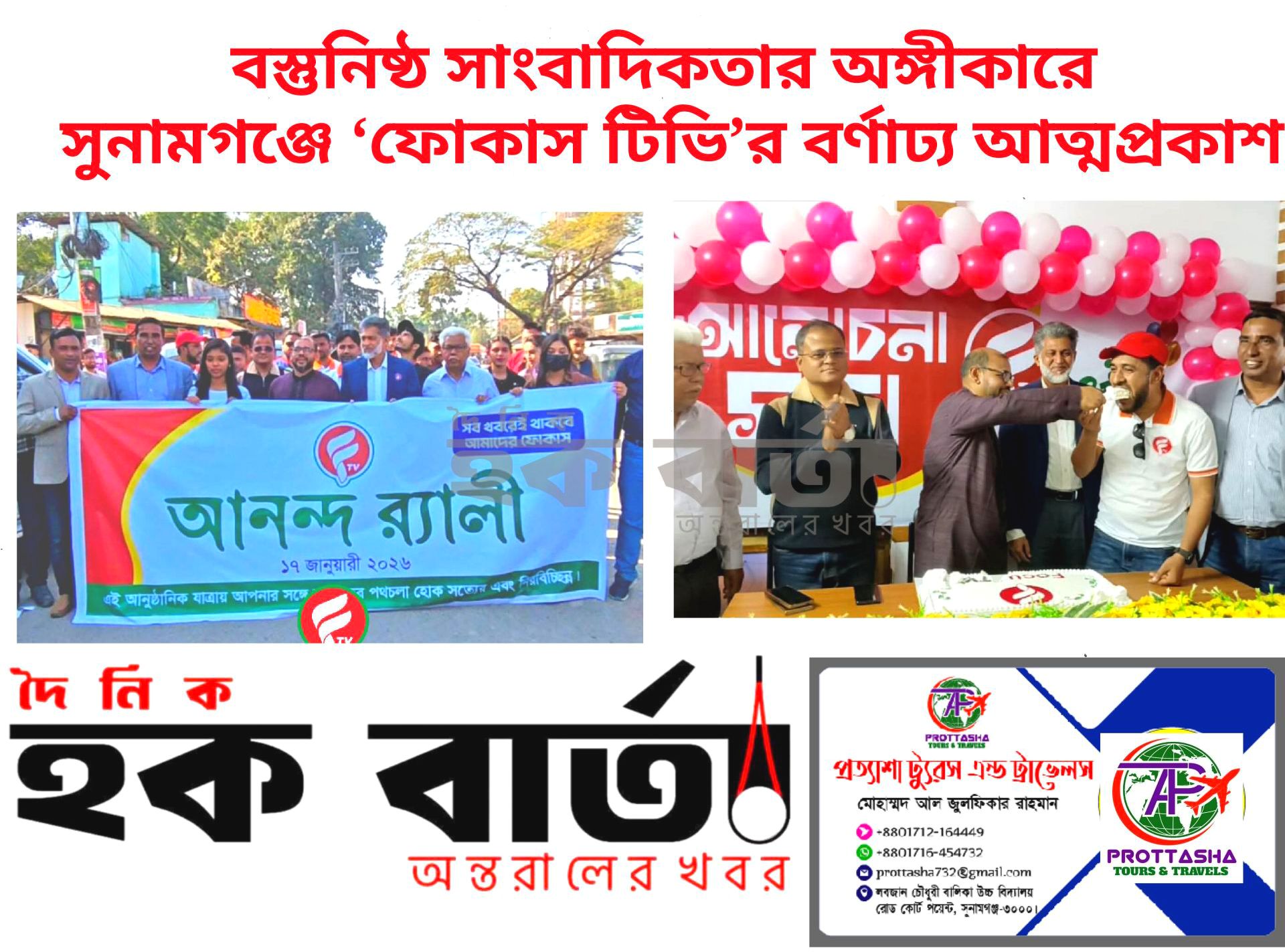 বস্তুনিষ্ঠ সাংবাদিকতার অঙ্গীকারে সুনামগঞ্জে ‘ফোকাস টিভি’র বর্ণাঢ্য আত্মপ্রকাশ